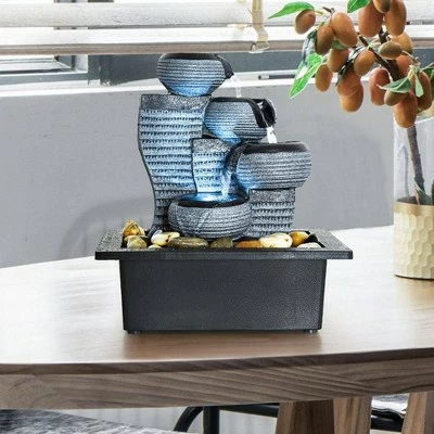 Soothing Waterfall Fountain: Water flows down from the top level, accompanied by the sound of murmuring water. Close your eyes and feel as if you are in nature. Soothing and relaxing, eliminates the stress and fatigue throughout the day.