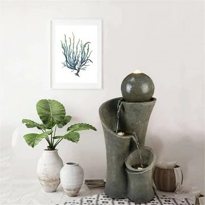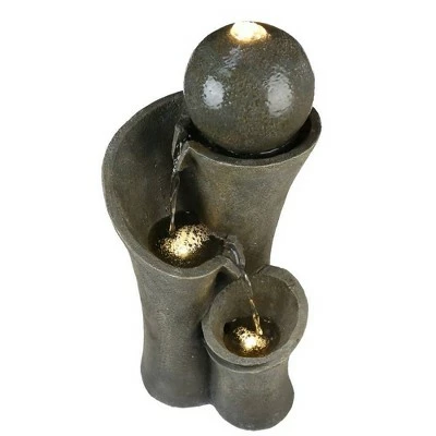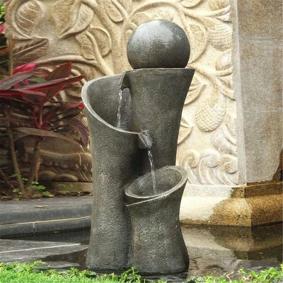 A modern piece that brims with a timeless Zen, soft water falls help to bring in a natural element.This patio water fountain will compliment virtually all types of indoor and outdoor settings. This garden fountain features floating sphere and elegant curves, water bubbles out from the top of the orb, smoothly flowing down the surface and down to the curved tiers to create delightful waterfall.Soothing water sound help to sooth your stress away Built-in LED lights illuminate the waterfall floor fountain to create dramatic look at night. A quiet, powerful, adjustable-flow submersible water pump included, you can completely relax to enjoy the serenity of cascading waterfalls.