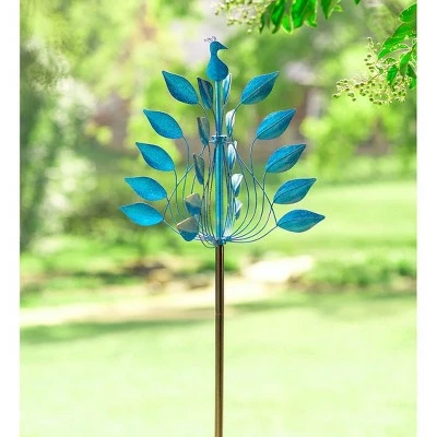 When you display our stunning Cobalt Leaves Metal Peacock Wind Spinner in your garden, you’ll be as proud as a, well, you know. Crafted from metal and finished a bright cobalt shade of blue, this spinner features 20 “feathers” arranged on an airy array of metal wires that catch the breeze and go for a spin. At the top is the silhouette of a peacock, giving the impression that the spinner below is his beautiful plumage. At seven feet tall, this delightful metal wind spinners installs securely in your garden thanks to sturdy metal stakes. Turns easily in even a gentle breeze..