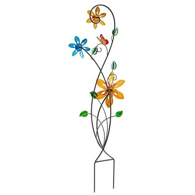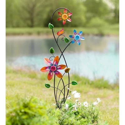 This delightful Colorful Spinning Flowers Garden Stake and Wind Spinner combining two garden favorites in one. This bright decorative trellis is enhanced by three hand-painted colorful flowers that rotate in the breeze. Two smaller flowers and one larger one turn in even a soft breeze. Crafted from iron for long life and hand painted in bright colors. Sturdy metal stakes ensure secure installation in your garden..