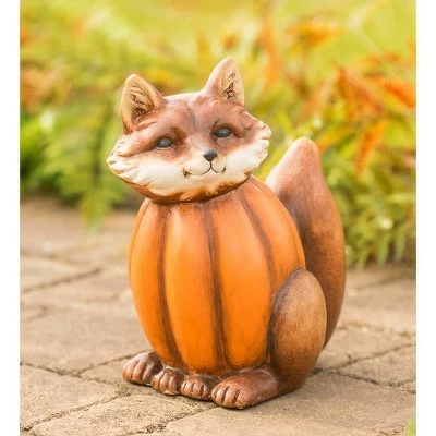 Our Fox in a Pumpkin Sculpture, is an adorable fall-themed ceramic decoration for indoor or outdoor display. Donning a pumpkin as part of his winter attire, this dapper fox looks ready for an autumn parade. The pumpkin’s color goes beautifully with his own orange coat. Cast in weather-resistant resin, he’s ready to face the elements. Wind & Weather Exclusive Design.