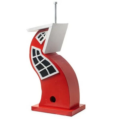This whimsical Gray Swaying Wooden Birdhouse has a distinctly surreal flair to its design. Handcrafted in the USA, each birdhouse is made from layers of pine wood that are glued together, bent to the desired shape and secured with wood screws. The 1¼” round opening is perfect for chickadees, wrens and other small birds. Each birdhouse is hand painted with two coats of primer and two coats of exterior house paint. The bottom unscrews for cleaning. Made in USA.