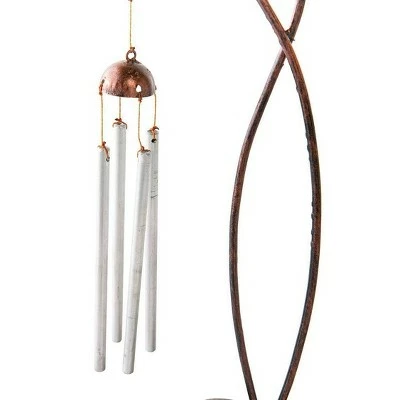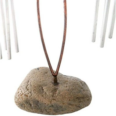 Our Metal and Glass Double Wind Chime is truly a work of sculptural art that will delight the eyes AND the ears. Gracefully curving copper-colored metal rods rise from a real river rock base to suspend colorful recycled glass shards and two sets of aluminum bar chimes. Lovely in the garden, a sunroom or on a coffee table this unique chime is handcrafted by artisans in Bali from a mix of new and reclaimed metal and recycled glass in blue, green and amber colors. The two sets of four aluminum bars create a soothing tone when the breeze blows. A unique and thoughtful gift for any occasion.