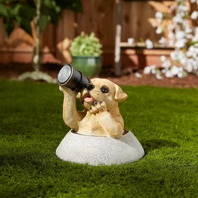 - Liven up your outdoor space with this adorable puppy solar light statue featuring a whimsical depiction of a charming puppy looking through telescope. This sweet addition will make any space feel instantly more inviting.