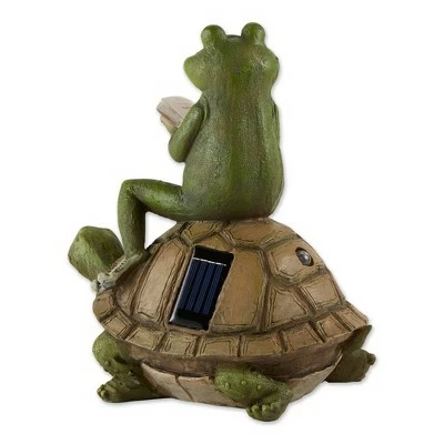 - Make your garden look like a whimsical place filled with magic and wonder with this adorable statue of a charming frog riding a turtle. This adorable solar statue is a great addition to your front walk, garden, or patio.