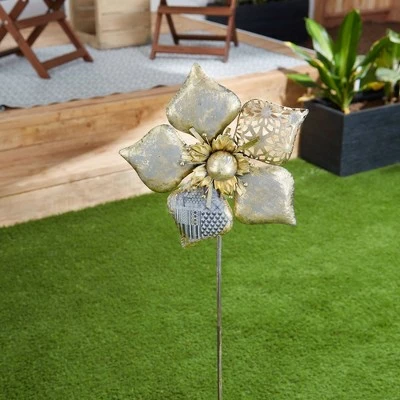 - Charming flower garden stake is made of iron and measures 12.5×2.5×38.5 inches.