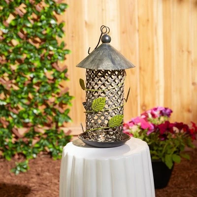 This piece is sure to bring birds to your garden and yard every day with this decorative cast iron green leaf bird feeder. This detailed piece of garden and yard decor brings style and function. Also an excellent present or housewarming gift idea for the bird enthusiasts in your life.