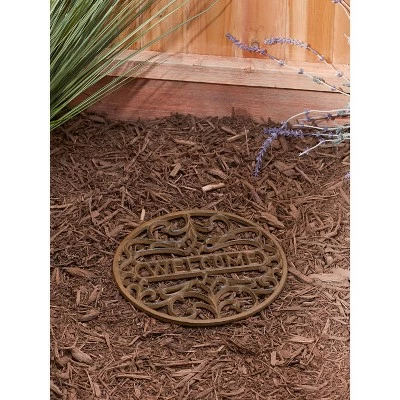 - This Welcome stepping stone is just what your garden or yard needs! Beautifully detailed and cast from iron, it will be your favorite outdoor accent for years to come.